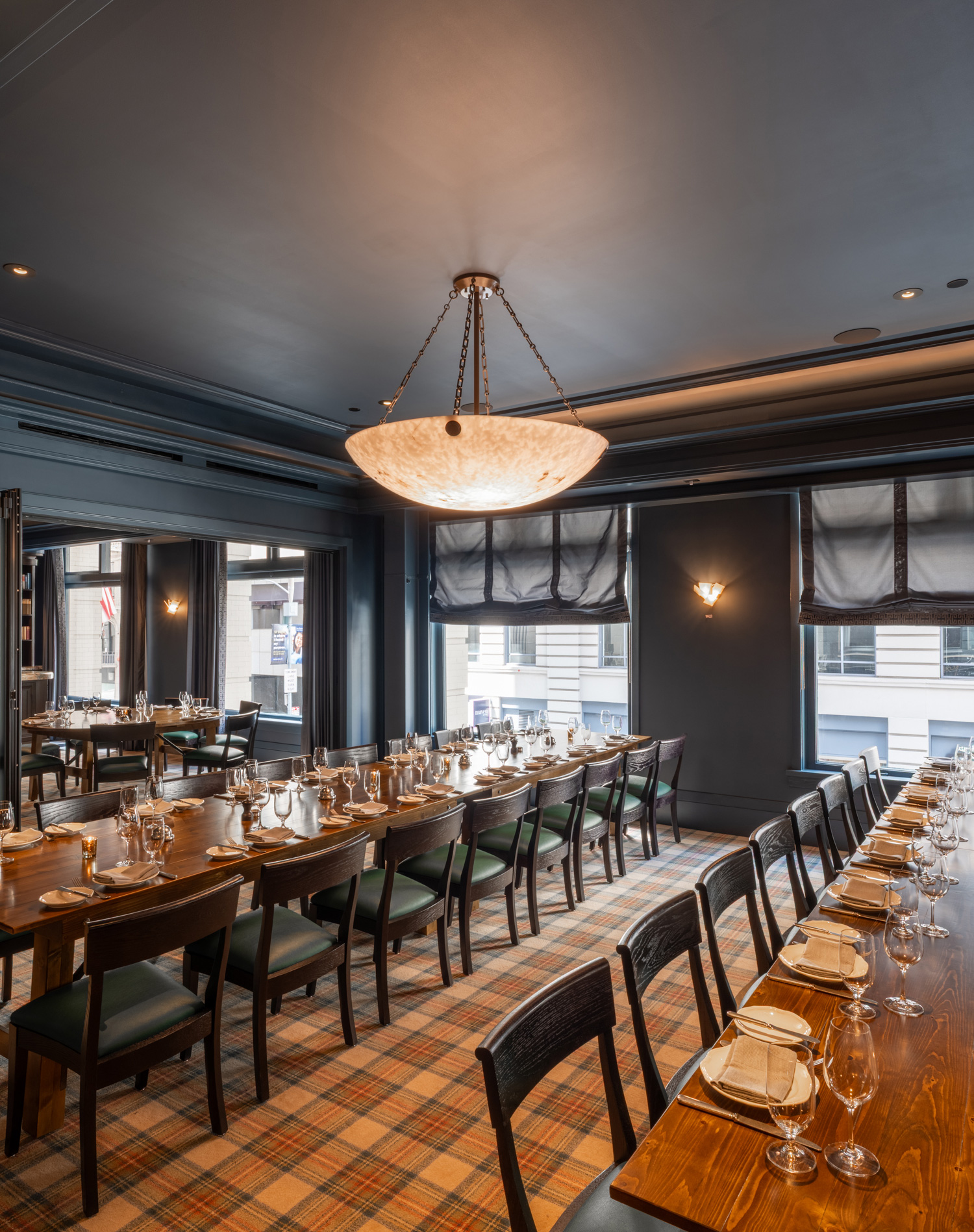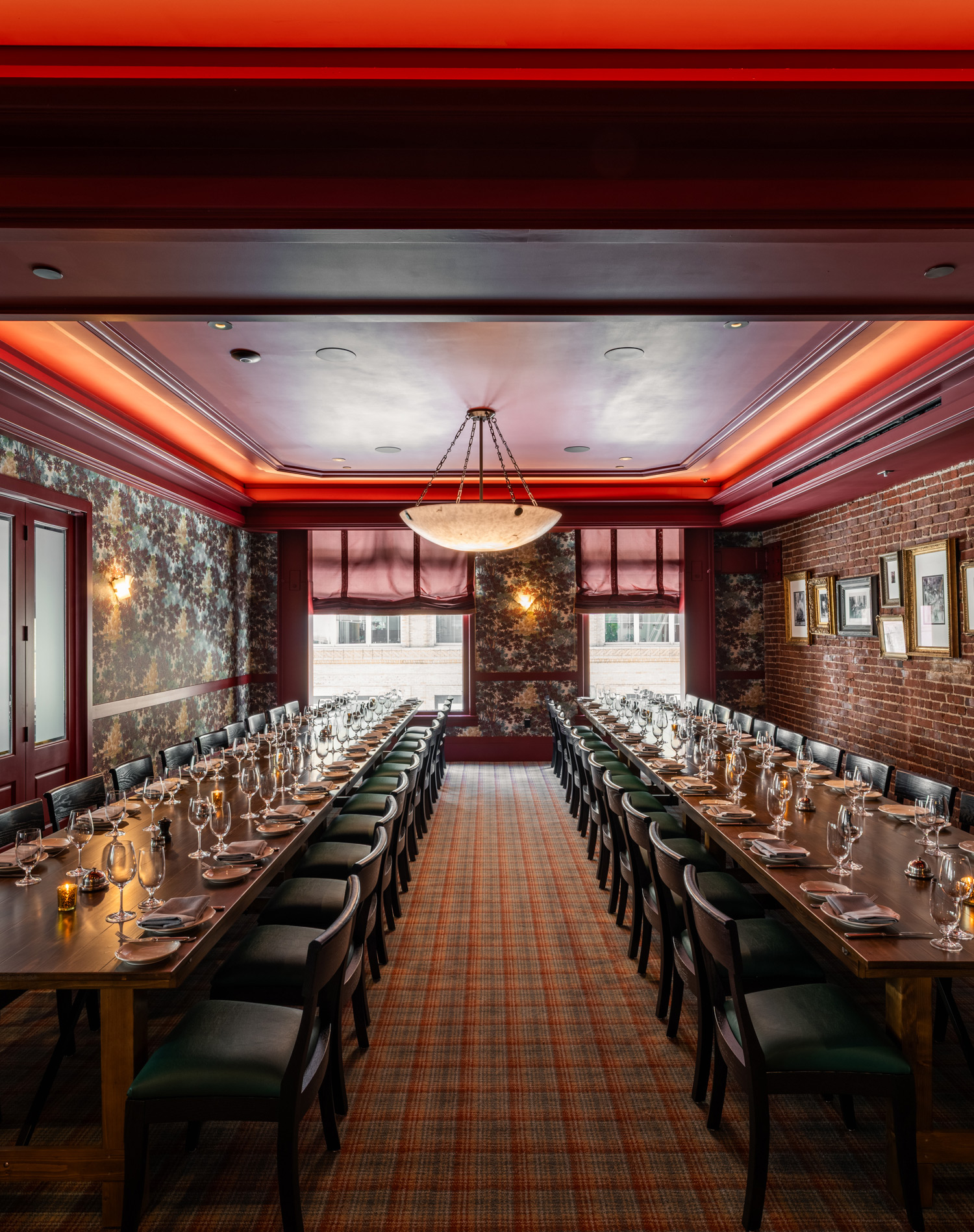A fully private space, ideal for corporate dinners and social events, accommodating up to 50 seated guests.